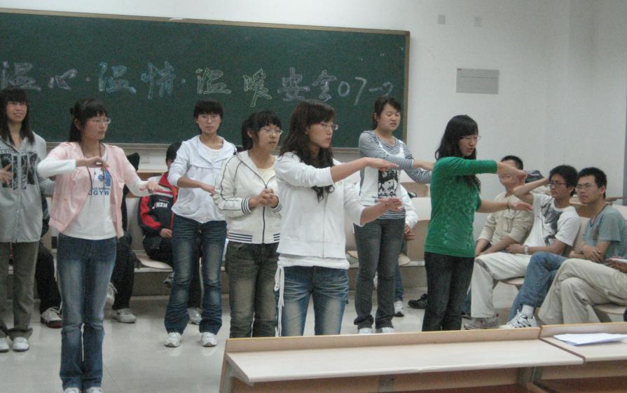 安全07-2班在集体送贺卡、写祝福之后,于2009年5月20日晚在公教五A201举办了“温心·温情·温暖”主题班会活动。此次活动的成功举办对于安全07-2班具有重大意义:极大的增强同学们的自信心与荣誉感,促进同学们的相互交流与了解,增进同学们的友谊,让大家感受到大家庭的温暖、温馨和温情。污污漫画