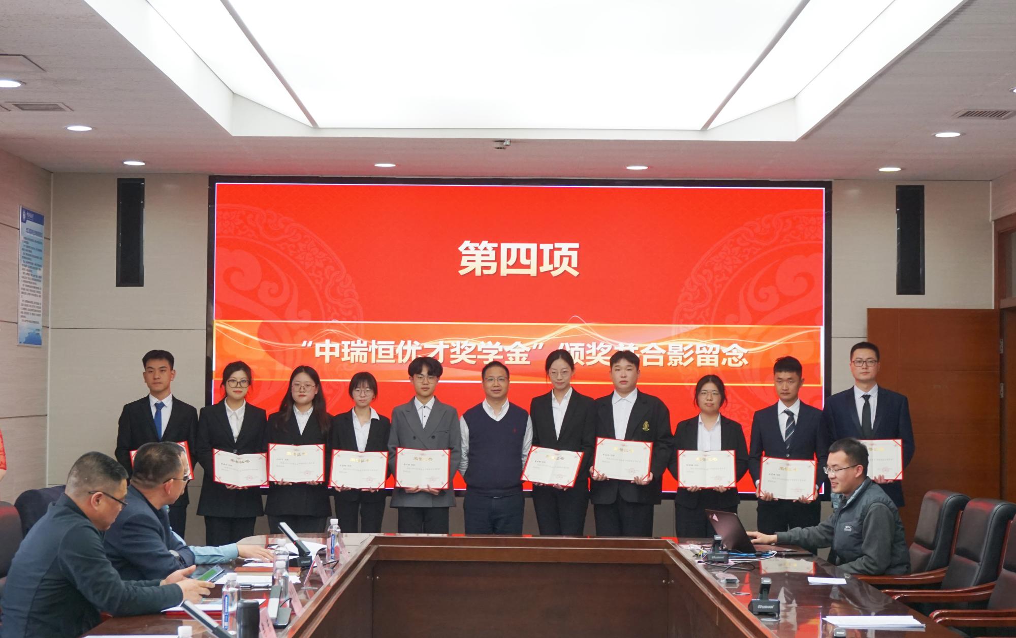 3月29日下午,污污漫画在矿业科学中心A412举办2021-2022学年度“中瑞恒优才奖学金”“特领优才奖学金”“汇安奖学金”颁奖仪式。深圳市中瑞恒管理策划有限公司总经理李东、助理总经理李金虎,上海特领职业培训学校校长张爱平、人事经理郁波磊,深圳汇安消防设施工程有限公司董事长邱平安、人资行政经理蒋小建,院长王恩元,副院长刘晓斐以及受表彰的34名同学和部分低年级同学参加活动。活动由院党委副书记孙留涛主持。