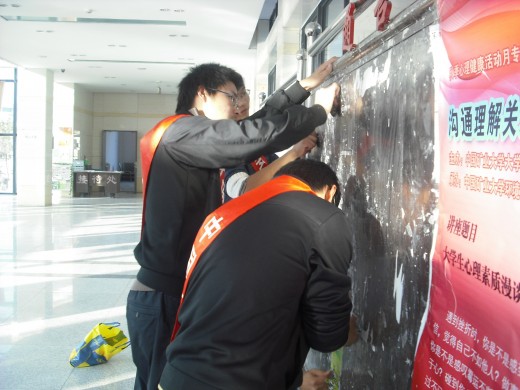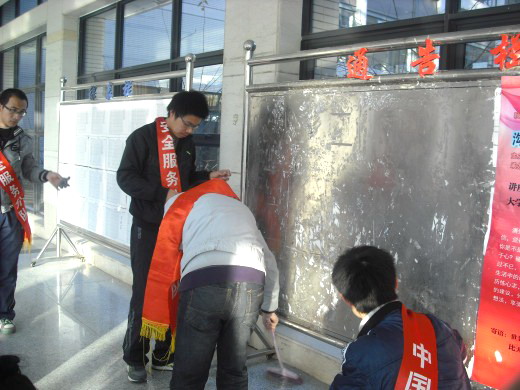 服务分队B组在公教一区,三区顺利开展了清理、擦洗公告栏的义务活动。B组组长杨成到场组织工作,B组全体组员悉数参加。
