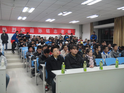 讲座一开始,孙铭志先生便以激情的开场白吸引了同学们的听讲的兴趣。随后,他幽默风趣的谈起了自己在大学的生活,与现场同学分享了自己的学习经验,比如如何充分利用大学时间,如何有效的在大学的生活中为将来的工作和成功奠定基础。在分享自身经验的同时,孙先生更与同学们进一步讨论了“时间是怎样浪费的”,“如何高效地利用时间”等大学生常见的问题。讲座中,孙先生深刻的哲理引人深思,诙谐的言语另同学们开怀大笑,追求完美的精神引起了同学们的共鸣。讲座过后,在主持人的引领下,同学们与孙铭志老师进行互动活动。最后活动在九点整圆满落下了帷幕。