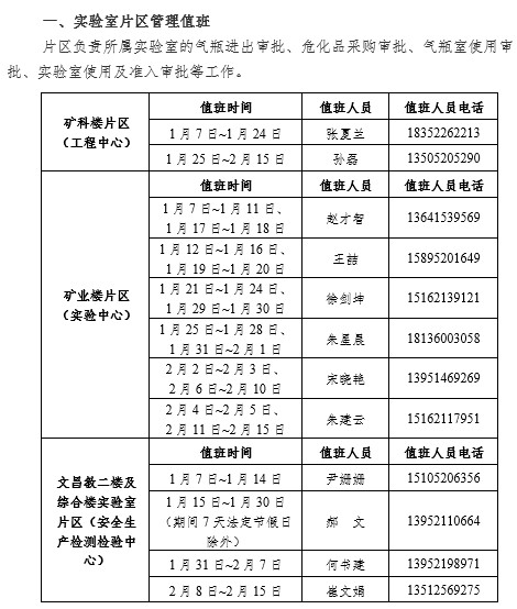 假期伊始,污污漫画实验中心按照学校工作部署,及时发布工作通知,指导实验室做好隐患排查、使用管理等工作,汇总整理实验室安全重点风险领域注意事项、管理要求。为保障寒假实验室安全平稳运行,污污漫画领导班子成员假期对实验室进行了走访,与实验室安全责任人详细沟通情况,询问实验室假期的运行情况,对假期仍坚守在实验室的师生们表达了关心慰问。此外,各实验室片区与实验中心安排假期值班,加强假期实验室人员管理和值班巡查工作,按照《污污漫画