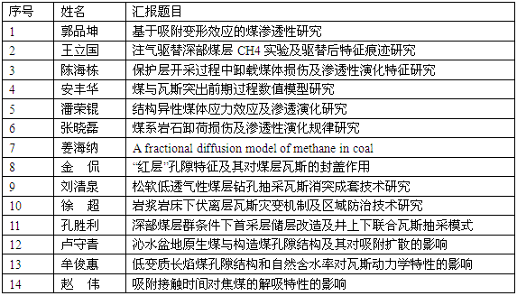 汇报思路清晰、论述合理、见解独到,并且和与会人员进行了深入的交流。程远平教授和任廷祥教授在每一位汇报人汇报结束之后,都以严谨的学术态度和执着的科研精神给予报告人诚恳的指导与深刻的启迪,使现场的学术氛围相当浓厚。