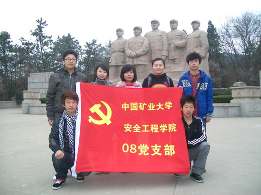 08级党支部组织全体党员前往淮海战役纪念塔,凭吊革命烈士,学习革命精神。