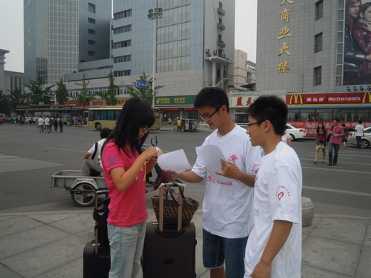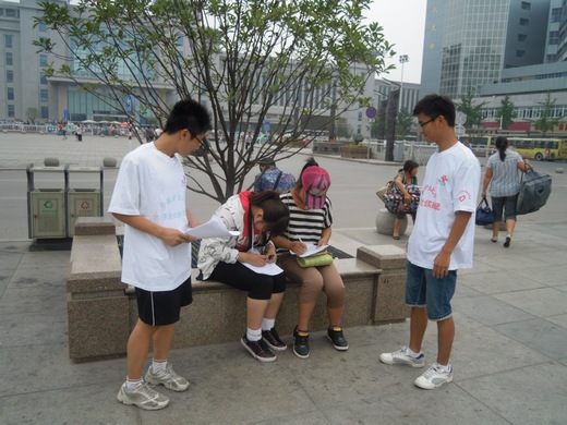 “碧海蓝天”推进环保主题实践团在徐州市火车站、市中心地下商城等人口密集地区开展了“市民低碳理念知识普及情况调研”活动。