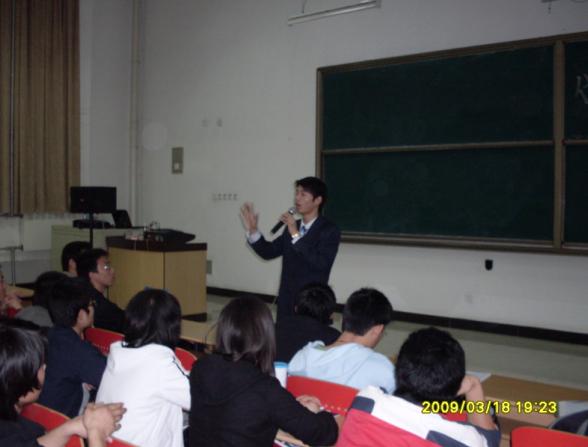 当金融危机的狂潮席卷而来,大学生就业问题成为焦点,作为一个成功的创业实践者,凯老师结合自身的亲身经历,讲述了自己创业道路中遇到的困难和挫折,以及自己如何克服困难取得今天的成绩,他热情洋溢的讲述赢得了在场同学的阵阵掌声。此外,我校学生、现终极英语的高级讲师刘杰也应邀就英语学习的方法与同学们进行了分享。