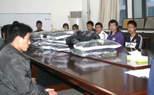 党政领导和辅导员老师考虑到部分同学家庭条件无法购买御寒衣物,难以抵御低温的侵袭,特为10级部分家庭经济困难同学发放寒衣,并嘱咐他们加强营养,保持身体健 康。同时,他勉励同学们刻苦学习,积极进取,争取早日成才,摆脱贫困。