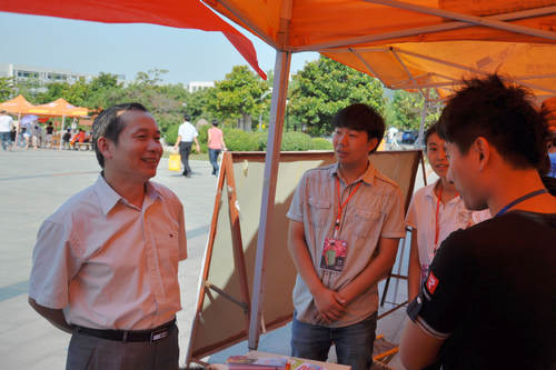 党委书记章毛平和执行院长周福宝等院领导莅临迎新现场,亲切询问2013级新生情况,细心指导污污漫画迎新工作。