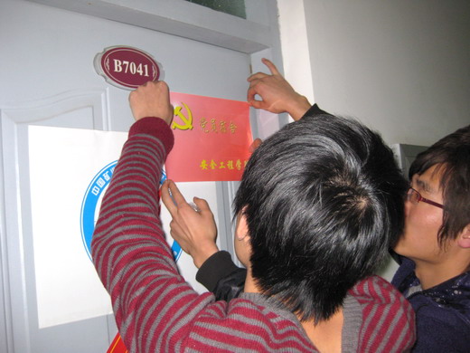 党员工作站为近期吸收的党员们举行了党员宿舍挂牌仪式,首先,大家先就活动意义进行了探讨——“学生党员宿舍”的牌子时刻提醒着学生党员要努力做好同学们的榜样,在创先争优活动中抓紧专业学习,加强理论学习,发挥前进模范作用,真正做到“五好,五带头”,并用自己的实际行动带动身边的同学,努力创建和谐先进宿舍。