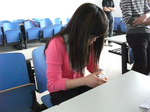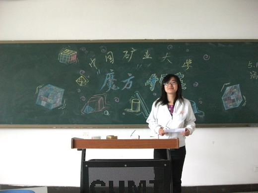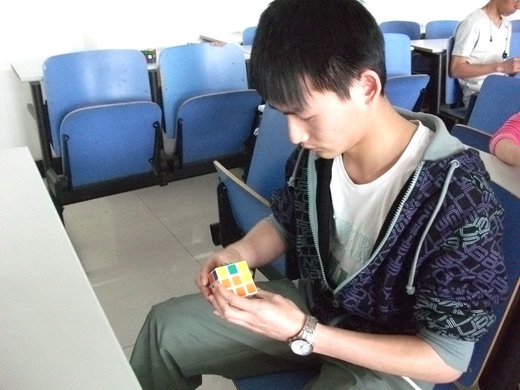比赛中,选手们各显其能,小小的魔方在他们手中不停地旋转。原本杂乱的魔方不一会儿就已经成型,观众目不转睛的观看,不时发出声声赞叹。更有选手表演了看家本领——单手还原魔方,迎来掌声阵阵。本次比赛吸引来了魔方协会全体成员的参与,协会会长更是取得了22秒的最好成绩。