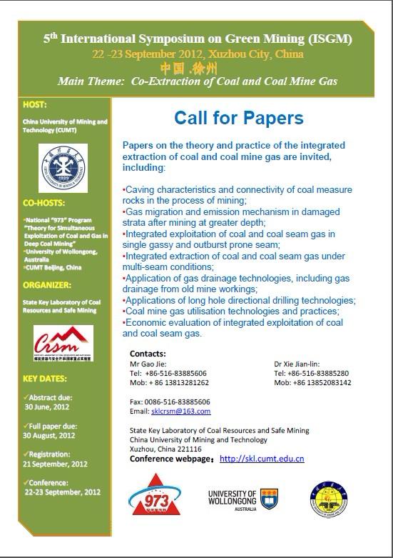 第五届绿色开采理论与实践国际研讨会征文通知
