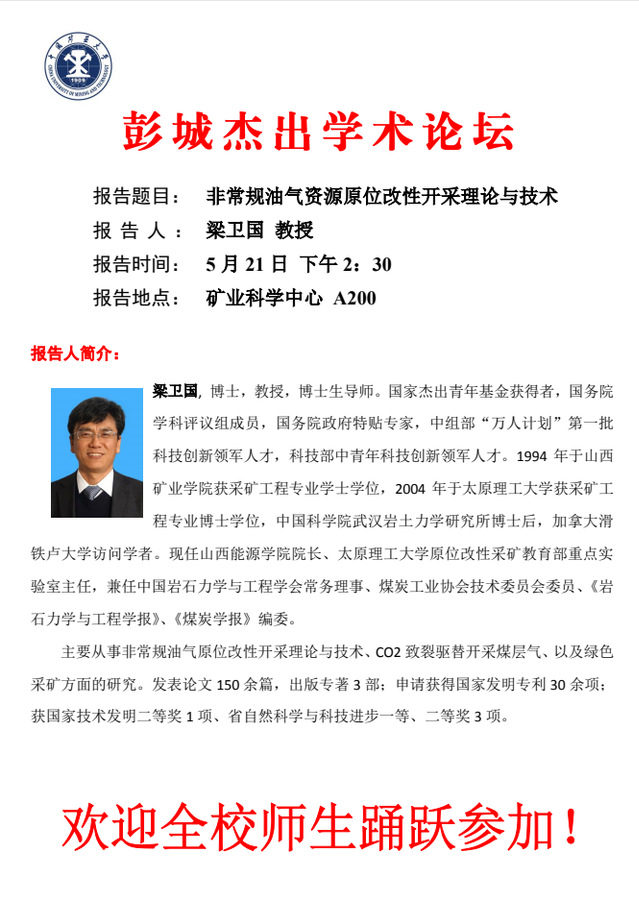 「彭城杰出学术论坛」非常规油气资源原位改性开采理论与技术