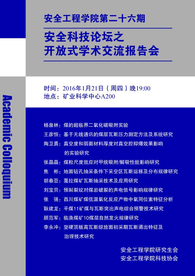 第二十六期安全科技论坛——开放式学术交流报告会